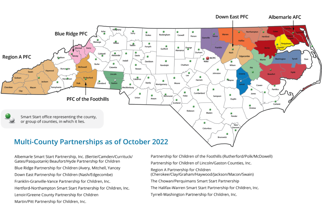 Every corner of North Carolina benefits from the Smart Start Network. 75 nonprofit partnerships—one in every North Carolina county—work towards ensuring that the state’s nearly 600,000 children five and under have access to critical early childhood services.